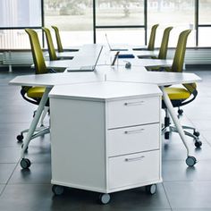 Invest in storage systems that allow team members to keep desks and floor areas clutter free. Here are a few examples:
