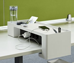 It could be possible to utilise desk storage solutions that help keep clutter to a minimum. Here are some examples that could help in your office.